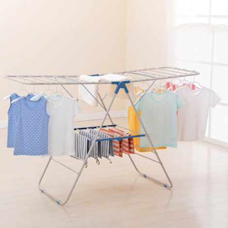 晾衣架 阳台落地可折叠晒衣架 蓝色 大号